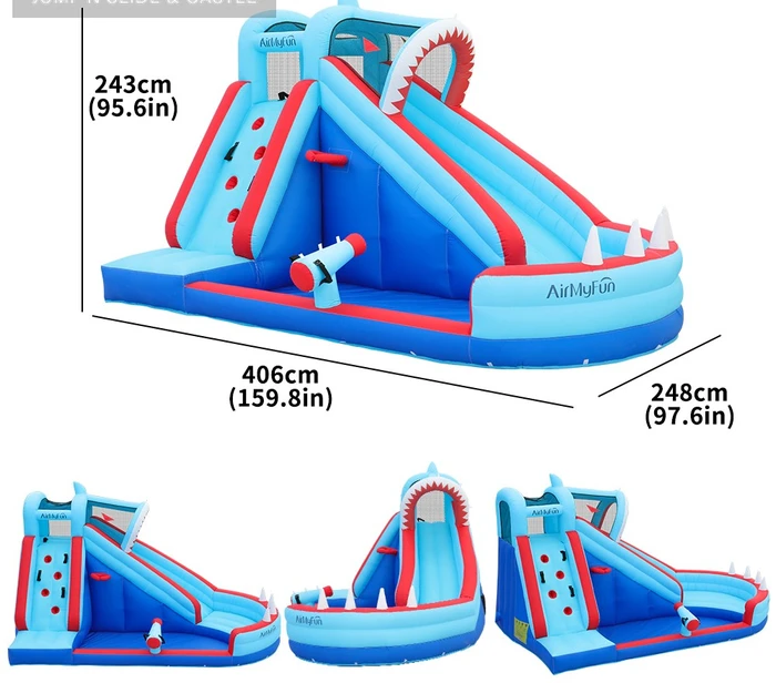 מתקן קפיצה מתנפח מגלשה קיר טיפוס ותותח מים דגם ED910E