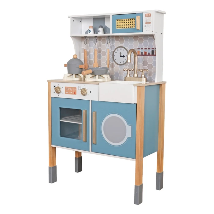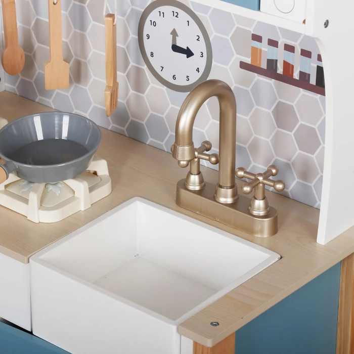 מטבח לילדים עשוי מעץ טבעי ואיכותי הכולל עיצוב נקי ומודרני