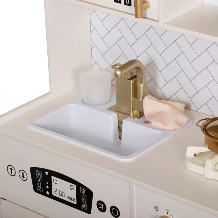 מטבח לילדים עשוי מעץ טבעי ואיכותי הכולל עיצוב נקי ומודרני