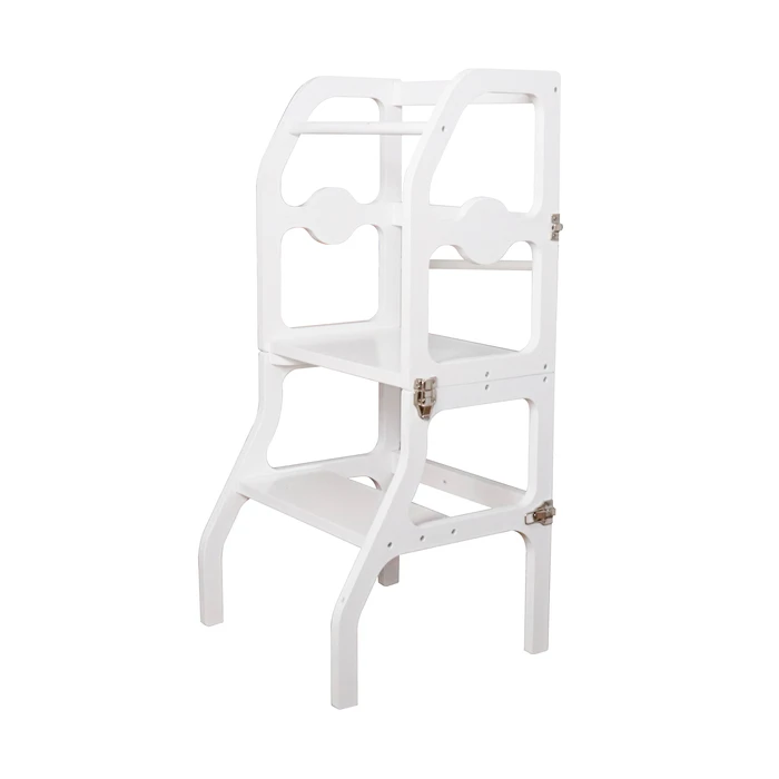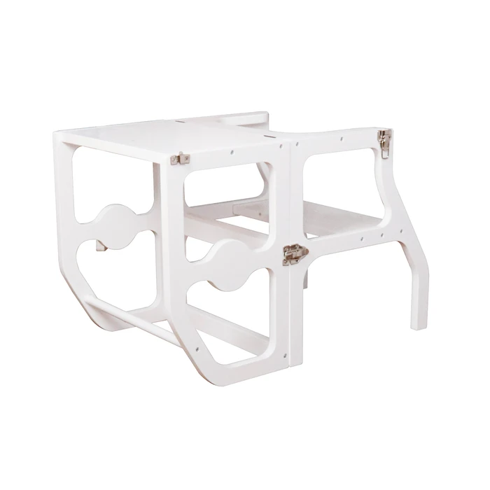 מגדל למידה הופך לשולחן וכסא מעץ בצבע לבן