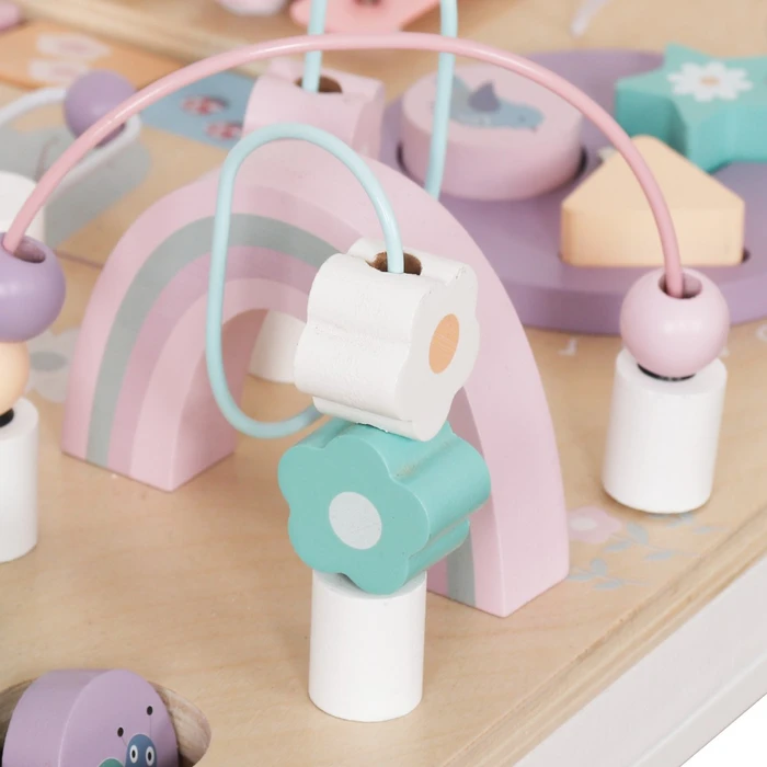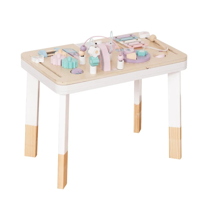 השולחן מאפשר לקטנטנים להתנסות במגוון רחב של דברים מעניינים בשולחן אחד