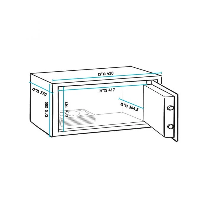 - מידות: חוץ 200X370X420 מ"מ / פנים 197X320X417 מ"מ